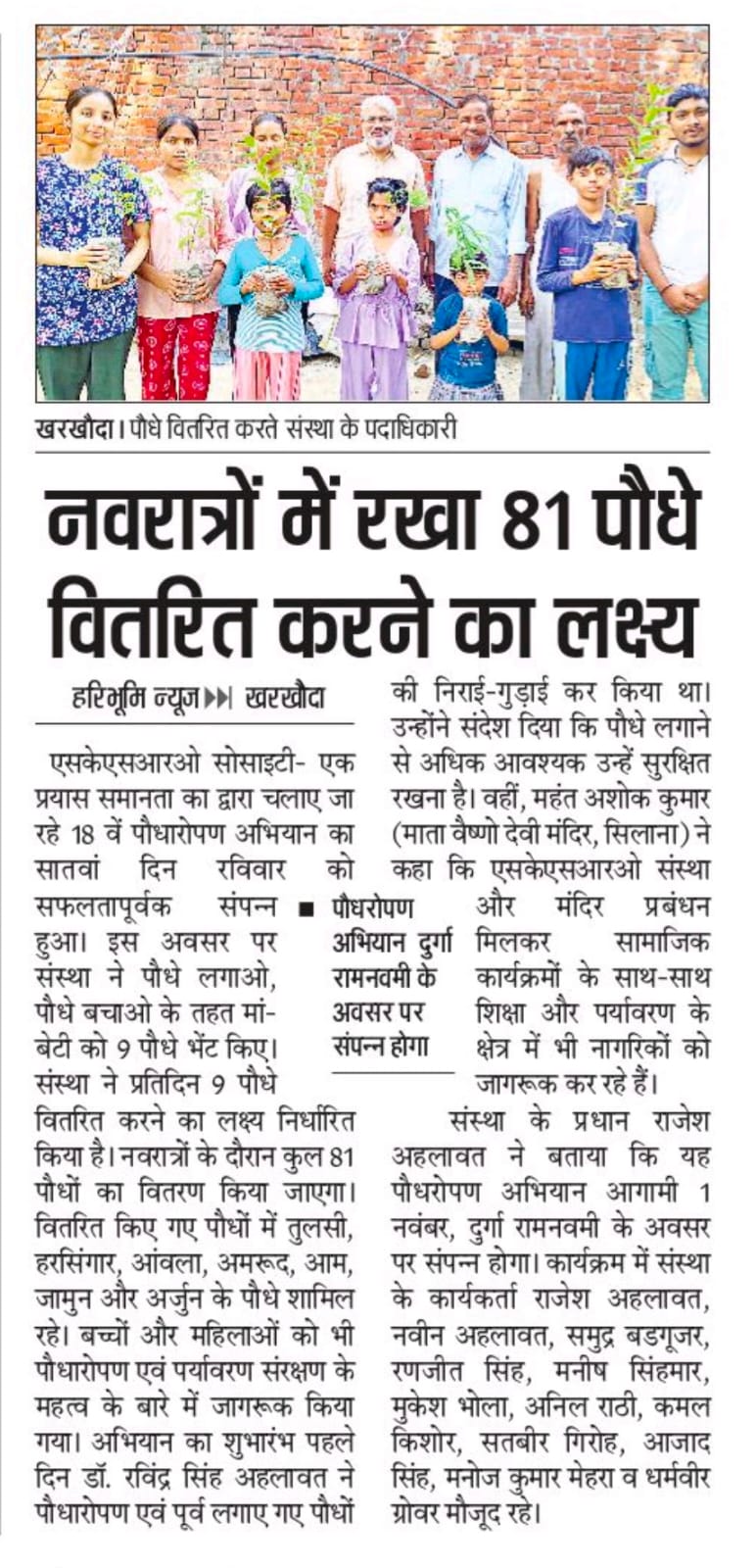पौधारोपण अभियान 8 जुलाई 2024 बहादुरगढ़ - खरखोदा - सोनीपत