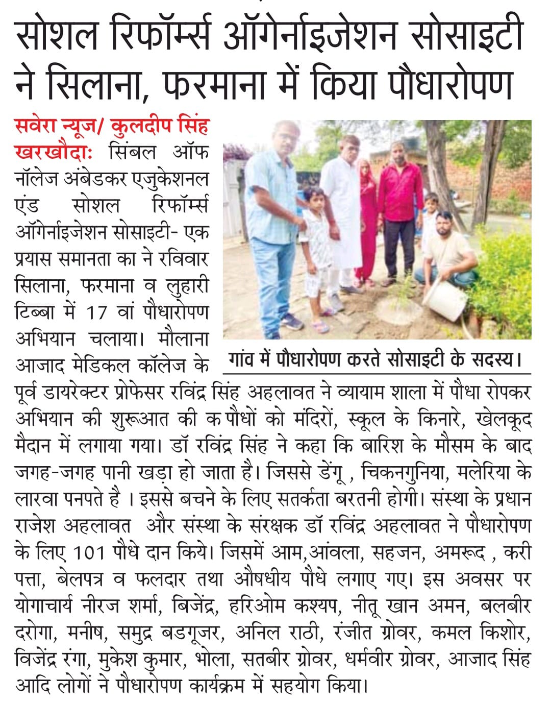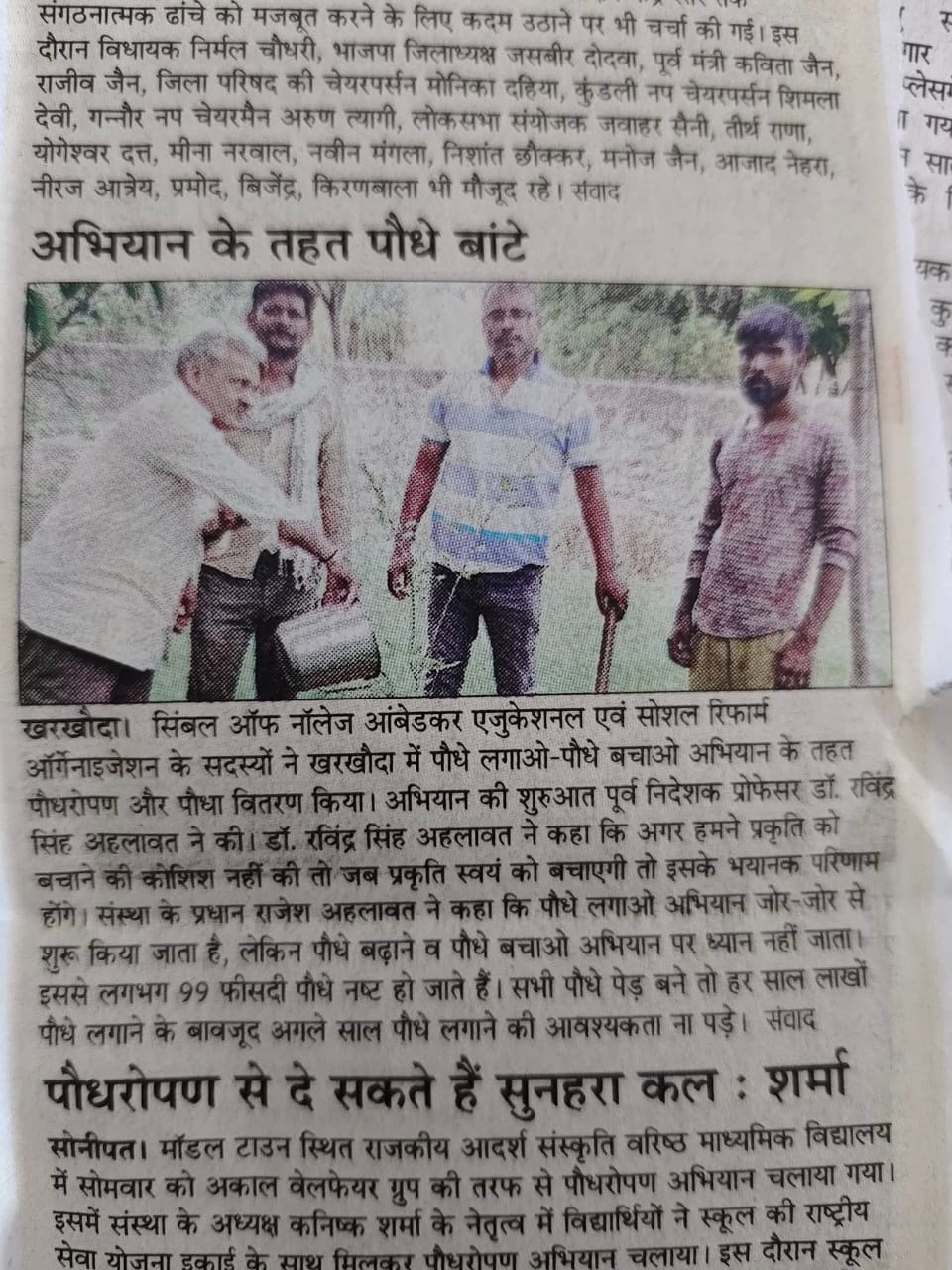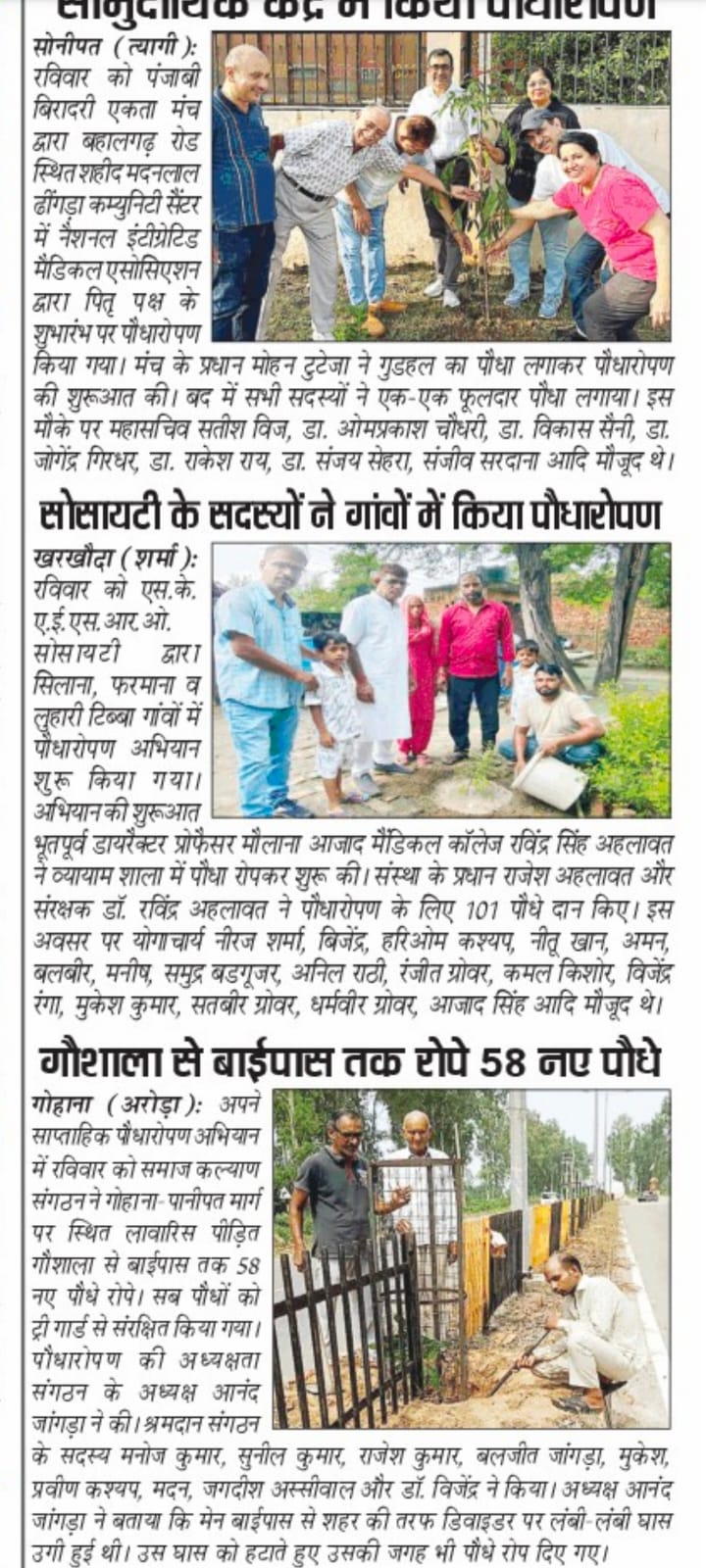 पौधारोपण अभियान 8 जुलाई 2024 बहादुरगढ़ - खरखोदा - सोनीपत