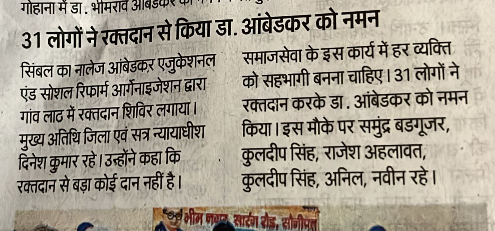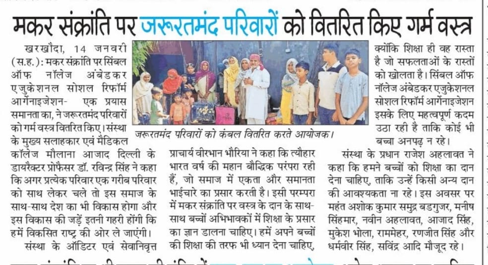 गांव सिलाना में बाबा साहब की जयंती को राष्ट्रीय सौहार्द दिवस के रूप में मनाने हेतु SKAESRO FAMILY