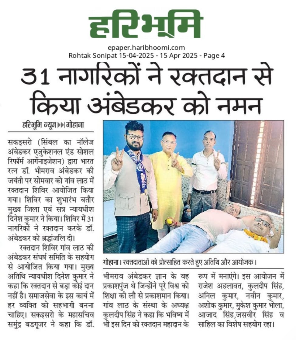 SKAESRO रक्तदान शिवर 14 अप्रैल 2025